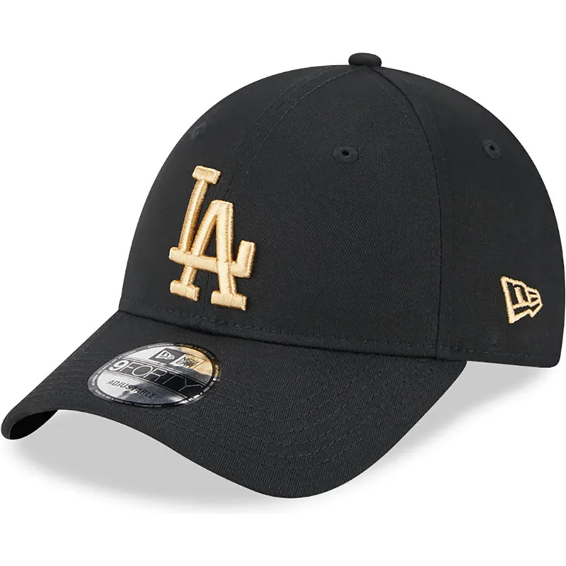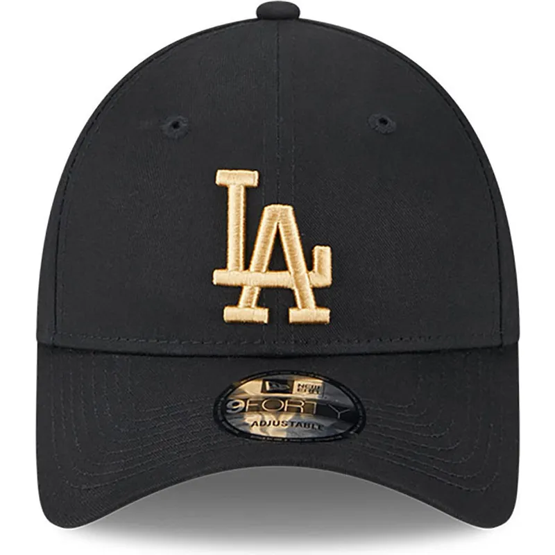 Schwarze verstellbare Kappe mit gebogenem Schirm und goldenem Logo 9FORTY League Essential der Los Angeles Dodgers MLB von New E