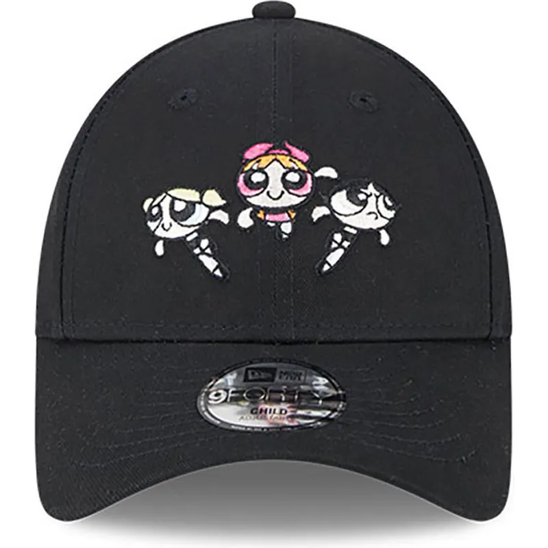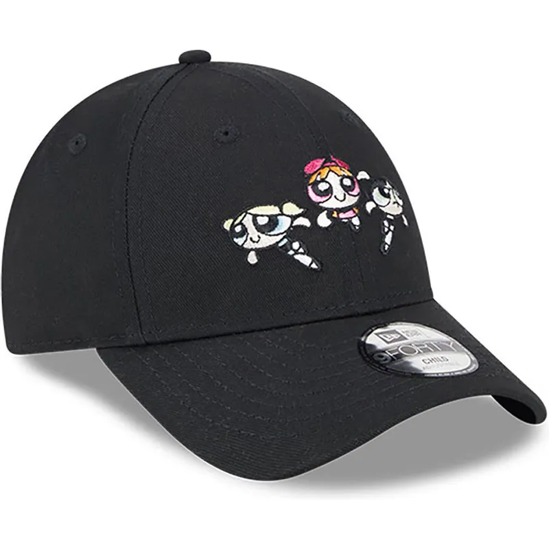 Verstellbare schwarze Kinder-Cap 9FORTY mit gebogenem Schirm von Pétalo, Burbuja und Cactus Die Powerpuff Girls von New Era