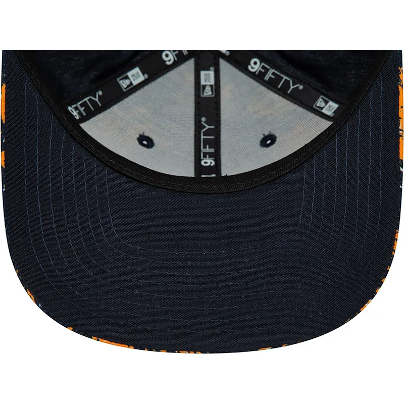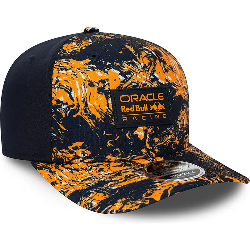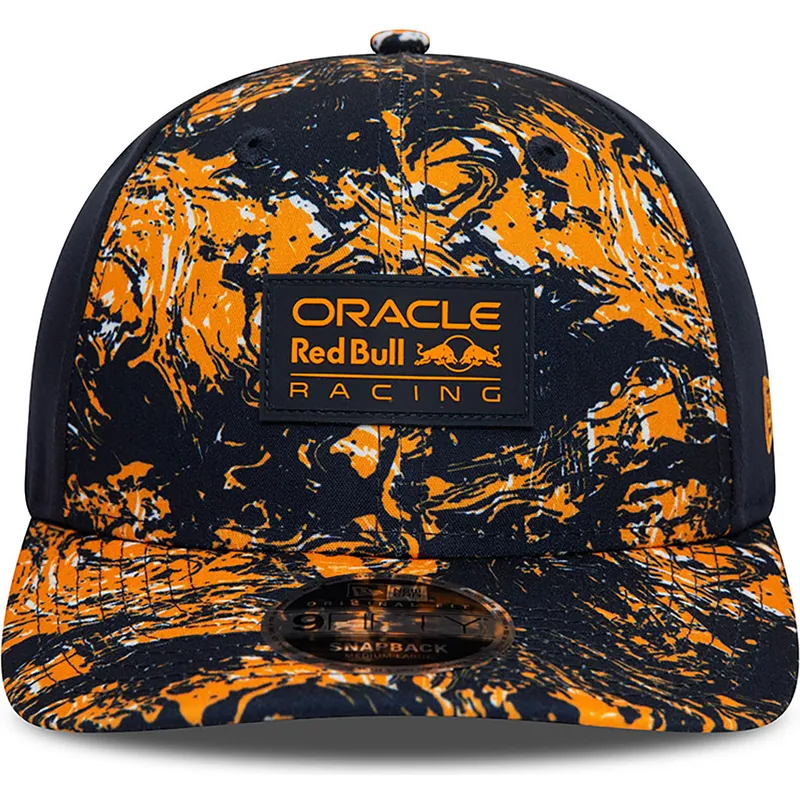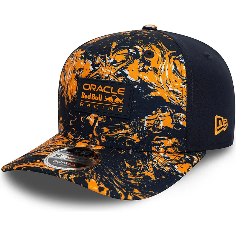 New Era Red Bull Racing Formula 1 9FIFTY Snapback Kappe mit gebogenem Schirm in Orange und Marineblau All Over Print