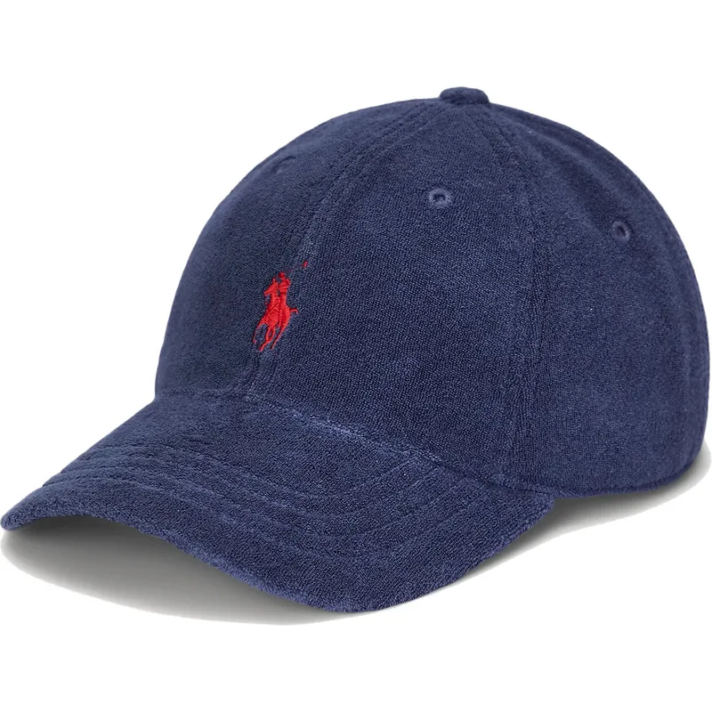 Die verstellbare marineblaue gebogene Kappe mit rotem Logo Cotton Terry Classic Sport von Polo Ralph Lauren ist die perfekte Ergänzung zu jedem Freizeitoutfit. Mit ihrem Unisex-Design ist diese Polo Ralph Lauren-Kappe ideal für Erwachsene, die einen sportlichen und modernen Stil suchen. Der verstellbare Riemenverschluss sorgt für eine perfekte Passform für jede Kopfgröße und macht es zu einer bequemen und vielseitigen Trageoption für jeden Anlass.