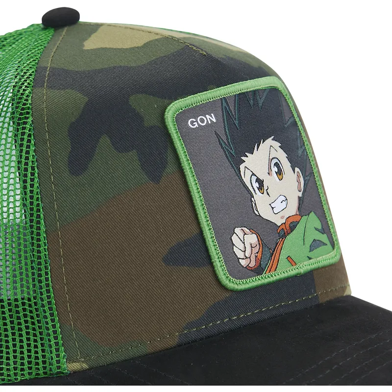 Die Gon Freecss HU3 Hunter x Hunter Trucker-Kappe in Tarnfarbe und Schwarz von Capslab ist ideal für Erwachsene, die ihre Leidenschaft für Hunter x Hunter auf subtile, aber wirkungsvolle Weise zeigen möchten. Durch den Snapback-Verschluss lässt sich die Kappe auf die gewünschte Größe einstellen und garantiert jederzeit einen perfekten und bequemen Sitz. Darüber hinaus macht das Thema dieser Kappe sie zu einem Sammlerstück für echte Fans der Serie.