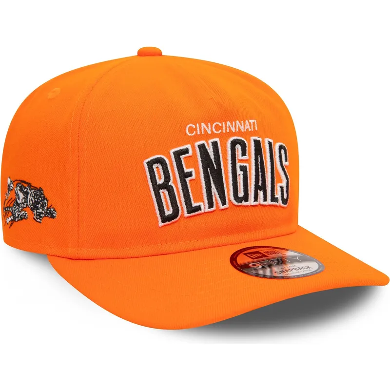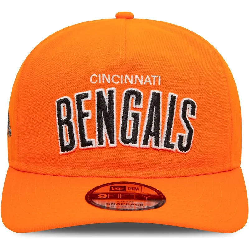 Die Cincinnati Bengals NFL Curved Orange 9FIFTY A Frame Coaches Snapback Cap von New Era kombiniert die leuchtende orange Farbe perfekt mit dem Bengals-Logo und schafft so ein auffälliges und modernes Design. Durch den Snapback-Verschluss lässt sich die Kappe auf die gewünschte Größe einstellen und garantiert so einen bequemen und sicheren Sitz. Diese Kappe ist Teil der NFL Cincinnati Bengals-Zubehörkollektion und somit ein Sammlerstück für die treuesten Fans des Teams.