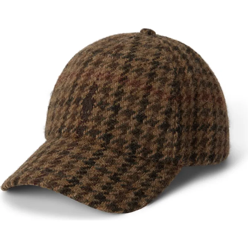 Verstellbare braune Kappe mit gebogenem Schirm aus kariertem Wolltweed von Polo Ralph Lauren