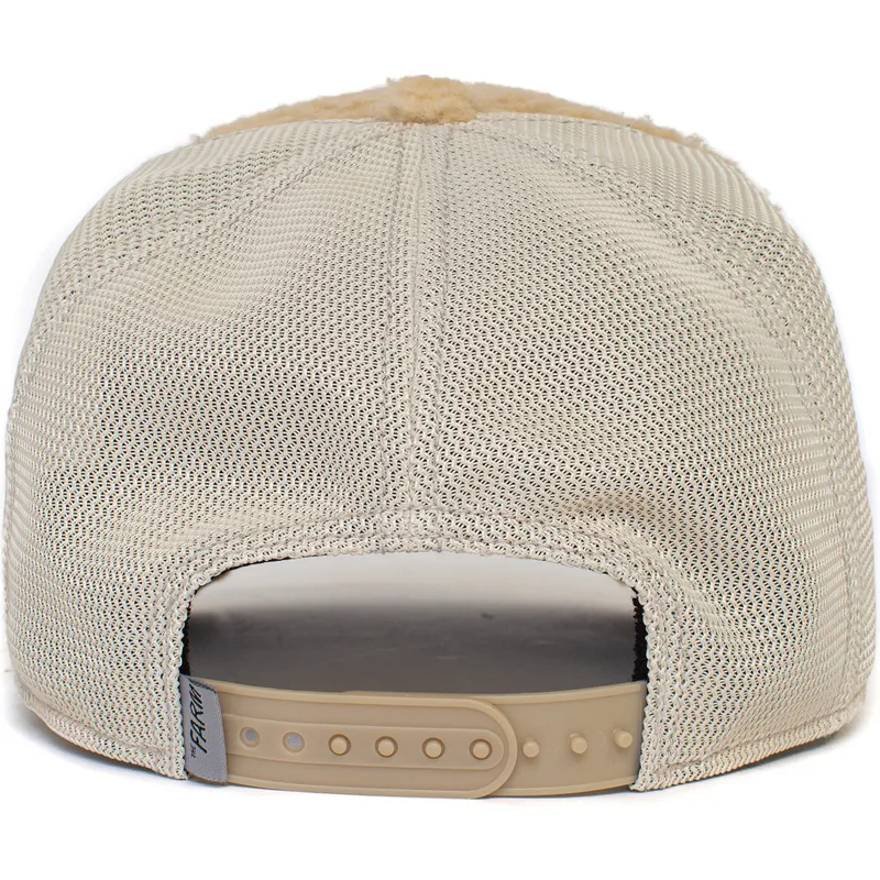 Beige Trucker-Kappe aus Schaffell Teddy First Best Friend The Farm von Goorin Bros.